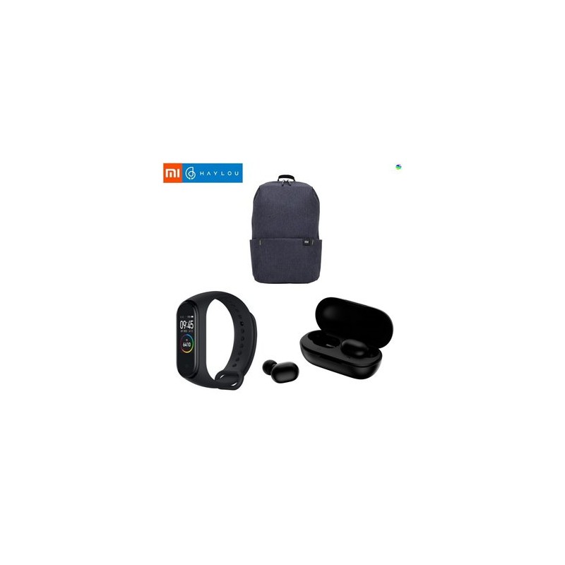 Xiaomi Haylou GT1 TWS Bluetooth 5.0 Headphones:Note:Hola, huésped. Cuando el auricular se averie, asegúrese de que tenga suficiente potencia.Huésped, sus audífonos están en uso, asegúrese de que la electricidad sea suficiente.Si no hay electricidad, primero hay que recargar y utilizar.Antes de recargar, quite el aislante debajo del auricular o no se puede cargar.Adoptar la verdadera tecnología inalámbrica 5.0, fuerte señal inalámbrica. Usted puede disfrutar de la música en una distancia de trabajo de 10 metros.Diseño de control táctil para facilitar su uso.Calidad de sonido superior. Con la tecnología de reducción de ruido DSP inteligente, el artículo puede entregar música de alta calidad y una experiencia de escucha agradable para dispositivos compatibles.Diseño impermeable IPX5 para el cual estará disponible cuando se use en un día lluvioso y gimnasia.Cómodo de usar, diseño ergonómico y sin dolor durante mucho tiempo de uso, no se caerá al correr.Compatibilidad fuerte y compatible con dispositivos IOS Android.Onducción, el trabajo, el interior y el exterior. 310mAh almacenamiento puede proporcionar 12 horas de uso para auriculares.Presupuesto:Parámetros técnicosMicrófono Síversión bluetooth V5.0Distancia de transmisión 10mImpermeable IPX5Recibir sensibilidad 110dBImpedancia 32ΩRespuesta frecuente 20-20kHzBatería Capacidad Caja de carga: 310mAh, 3.7VAuricular: 43mAh * 2, 3.7VTiempo de carga (h) 1.5hTiempo de trabajo (h) 12hTiempo en espera (h) 120h------------------------------------------------------------------------------------------------------------------------------------------------------------------------------XiaoMi MI Band 4_Negro:NotaLas cuatro pulseras de mijo satisfacen tus necesidades cotidianas.Cuando eres un aficionado al deporte o te concentras en una vida sana,es un trabajo perfecto que te ayuda a alcanzar tu objetivo físico.Pedometer,Sleep Monitor,and remiters are easy Access,para que veas el progreso que has hecho por la App.Una serie de dialectos personalizados le permiten responder fácilmente a cada escena y expresar fácilmente cada luna.Tip:El brazalete es la versión china,sólo soporta inglésCaracterísticas principales:0.95 pulgadas en pantalla de color de amoled, con una resolución de 120 x 240 píxeles en la pantalla de amoled.Cuidado con tu salud, registro cardiovascular, vigilancia del sueño, alerta de larga duración, etc.La capacidad de la batería a 135 ng / h permite un máximo de 20 días de espera.5ATM impermeable (hasta 50 metros)El Band 4 usa Bluetooth 5.0, proporciona una gama más amplia, velocidad de conexión y eficiencia.