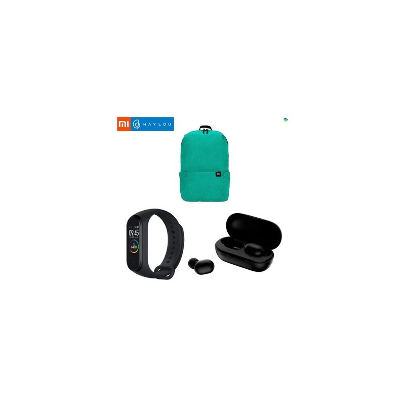 Xiaomi Haylou GT1 TWS Bluetooth 5.0 Headphones:Note:Hola, huésped. Cuando el auricular se averie, asegúrese de que tenga suficiente potencia.Huésped, sus audífonos están en uso, asegúrese de que la electricidad sea suficiente.Si no hay electricidad, primero hay que recargar y utilizar.Antes de recargar, quite el aislante debajo del auricular o no se puede cargar.Adoptar la verdadera tecnología inalámbrica 5.0, fuerte señal inalámbrica. Usted puede disfrutar de la música en una distancia de trabajo de 10 metros.Diseño de control táctil para facilitar su uso.Calidad de sonido superior. Con la tecnología de reducción de ruido DSP inteligente, el artículo puede entregar música de alta calidad y una experiencia de escucha agradable para dispositivos compatibles.Diseño impermeable IPX5 para el cual estará disponible cuando se use en un día lluvioso y gimnasia.Cómodo de usar, diseño ergonómico y sin dolor durante mucho tiempo de uso, no se caerá al correr.Compatibilidad fuerte y compatible con dispositivos IOS Android.Onducción, el trabajo, el interior y el exterior. 310mAh almacenamiento puede proporcionar 12 horas de uso para auriculares.Presupuesto:Parámetros técnicosMicrófono Síversión bluetooth V5.0Distancia de transmisión 10mImpermeable IPX5Recibir sensibilidad 110dBImpedancia 32ΩRespuesta frecuente 20-20kHzBatería Capacidad Caja de carga: 310mAh, 3.7VAuricular: 43mAh * 2, 3.7VTiempo de carga (h) 1.5hTiempo de trabajo (h) 12hTiempo en espera (h) 120h------------------------------------------------------------------------------------------------------------------------------------------------------------------------------XiaoMi MI Band 4_Negro:NotaLas cuatro pulseras de mijo satisfacen tus necesidades cotidianas.Cuando eres un aficionado al deporte o te concentras en una vida sana,es un trabajo perfecto que te ayuda a alcanzar tu objetivo físico.Pedometer,Sleep Monitor,and remiters are easy Access,para que veas el progreso que has hecho por la App.Una serie de dialectos personalizados le permiten responder fácilmente a cada escena y expresar fácilmente cada luna.Tip:El brazalete es la versión china,sólo soporta inglésCaracterísticas principales:0.95 pulgadas en pantalla de color de amoled, con una resolución de 120 x 240 píxeles en la pantalla de amoled.Cuidado con tu salud, registro cardiovascular, vigilancia del sueño, alerta de larga duración, etc.La capacidad de la batería a 135 ng / h permite un máximo de 20 días de espera.5ATM impermeable (hasta 50 metros)El Band 4 usa Bluetooth 5.0, proporciona una gama más amplia, velocidad de conexión y eficiencia.