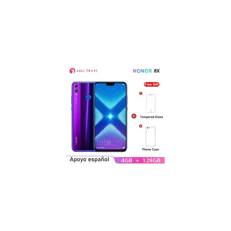 Honor 8XCámara kiwin 6,5 20.0MP AI de 710 pulgadas Pantalla de 6,5 pulgadas con una relación de pantalla de hasta 91% Una mano puede sostener un cuerpo peque?o. TüVTeléfono móvil con protección ocularAplique la certificación de fotobioseguridad de alto estándar a los teléfonos móviles para eliminar estrictamente la luz azul da?ina en la luz de la pantalla. Reduce el da?o en los ojos por usar el teléfono durante largos períodos de tiempo. Doble textura de cristal aurora para un aspecto brillante Procesador insignia estándar Kirin 710El primer procesador de 12 nmLa aprobación del nuevo chip de procesamiento de gráficos A73 coreHacer rendimiento mejorado significativamente GPU TurboEficiencia de procesamiento gráfico aumentada en un 60%Reduce el consumo de energía en un 30% 20.0MP AI CámaraEl cielo azul es más azul, el retrato es más bonito Sin miedo a la noche, ten una hermosa vista nocturnaEn el modo súper escena nocturna, AO wisdom anti-shake, por favor trípode, el disparo de mano sigue siendo estable y claro en 6 segundos. Graba en cámara lenta y toma una foto de la belleza de la cámara lenta.16 veces a cámara lenta, un segundo para ver los cristales de alta calidad de 480 cuadros, siente el tiempo para detener. Efecto de luz de retrato 3D, éxito de taquilla de nivel de estudio de disparo Tiro de belleza de 16 millones de AIEl teléfono móvil entiende mi bellezaRetrato temporizador HDR, foto retroiluminada también es claro3750 mAh Batería grande CPU :Kirin 710 octa-corePantalla:6,5 pulgadas TFT IPS355 1080x2220 pantalla táctil múltipleCámara:Parte trasera 20.0MP + 2.0MP F/1,8 frontal 16.0MP F/2,0Sistema:EMUI 8,2 Base en Android 8.1.0Batería:Batería de polímero de litio de 3750 mAh (típica), no se puede reemplazarVarios Idiomas:Sí (ruso, espa?ol, inglés, hebreo, árabe, francés, etc.)La tienda de juegos de GoogleSí, apoyoActualización de OTASí, apoyoNFC:No apoyoHuella digital:Sí, apoyoRadio FM :No apoyoRedTarjeta SIM 1:4G(TD-LTE)/4G(TD-LTE/LTE FDD)/4G(TD-LTE/LTE FDD3G(TD-SCDMA)4G/3G(WCDMA)2G(GSM)/2G(GSM)LTE FDD: B1/B3/B5/B8TD-LTE:B38/B39/B40/B41TD-SCDMA:B34/B39WCDMA:B1/B5/B8BC0 (800 MHz).Solo para China continental y MacaoGSM:B2/B3/B8Tarjeta SIM 2:4G(TD-LTE)/4G(TD-LTE/LTE FDD)/4G(TD-LTE/LTE FDD)3G(WCDMA)2G(GSM)/2G(GSM)LTE FDD: B1/B3/B5/B8TD-LTE:B38/B39/B40/B41WCDMA:B1/B5/B8GSM:B2/B3/B8