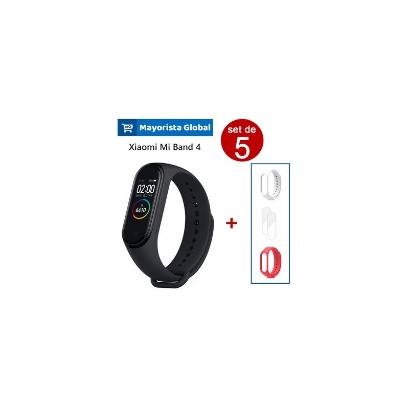 1 Xiaomi Mi Band 4 Original + 2 Correas de Repuesto(Rojo, Blanco) + 2 Micas de Pantalla