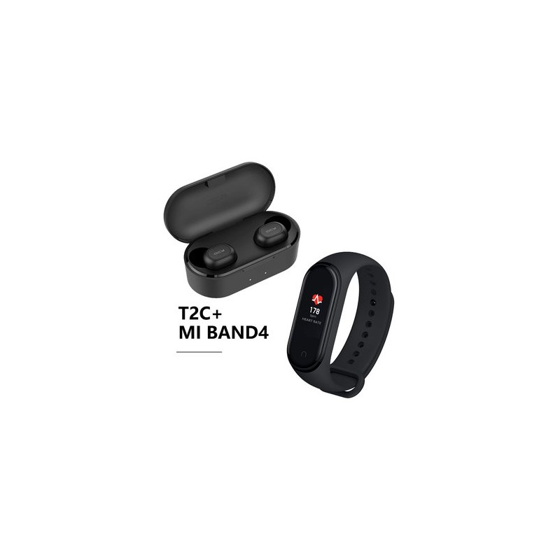 QCY T2C Audifonos BluetoothMicrófono de silicona de alta sensibilidad.Tecnología antiinterferencia y reducción de ruido CVC 6.0.Mejor reconocimiento de voz.Diseño ergonómico, se adapta al contorno de las orejas.Estuche de carga incorporado de 800 mAh para energía de respaldo. Bluetooth: V5.0.Conectividad: Inalámbrico Respuesta de frecuencia: 20-20000Hz. Impedancia: 32ohms.Sensibilidad: 108dB ± 3dB.Tiempo de conversación: 4h. Material: ABS y Metal.Capacidad de la batería - Auricular: 45mAh.Base de carga: 800mAh (incorporado).Dimensiones: 8 x 4.5 x 3cm / 3.15 x 1.77 x 1.18" (aprox.)Mi Band 4:Tamaño de la pantalla: 0,95 pulgadasRetroiluminación de la pantalla: Brillo máximo≥400nit, brillo ajustableMaterial de la caja: PC plásticoBluetooth: 5.0Tiempo de vida: 20 díasTipo de batería: Batería de seguridad de polímero de iones de litio de 135 mAh incorporadaSistema compatible: Android 4.4 y superior, iOS 9.0 y superiorSensor: sensor de aceleración triaxial, sensor de frecuencia cardíaca PPGMaterial de la pulsera: TPUTipo de pulsera: pulsera desmontableAncho de la pulsera: 18mmPulsera de longitud ajustable: 155-216mmRAM: 512KBMemoria flash: 16MBManera de carga: 2 pin pin pogoTiempo de carga: ≤2 horasCaracteristicas1. 50 m impermeable, se puede usar en la ducha, piscina y nadar en aguas poco profundas, pero no para saunas y buceo2. La nueva pantalla a color AMOLED no solo mejora el brillo, sino que también aumenta el 39.9% del área de visualización, más información de un vistazo.3. Función de movimientoCorrer, caminar, andar en bicicleta, correr bajo techo, nadar, hacer ejercicio, practicar deportesPantalla secundaria, recordatorio de velocidad, recordatorio de frecuencia cardíaca, contador de pasos4. Vigilancia de la salud.Recordatorio de alcance, establecimiento de objetivos, detección de sueño, frecuencia cardíaca manualFrecuencia cardíaca a lo largo del día, frecuencia cardíaca en reposo, curva de frecuencia cardíaca, recordatorio sedentario5. Otras funcionesDespertador, marcación preestablecida, marcación por reemplazo personalizada, bloqueo de pantalla, temporizador, cuenta regresiva, alarma móvil, desconexión de recordatorio, recordatorio, recordatorio de SMS, recordatorio de WeChat, recordatorio de calendario, recordatorio de mensaje de APP, pronóstico del tiempo, buscar teléfono celular, desbloquear teléfono móvil, evento recordatorio, modo nocturno, modo de no molestar, pago sin conexión de Alipay, reproducción remota de música desde el teléfono móvil, transmisión de Bluetooth, pantalla de progreso de carga, selección de modo de uso, actualización OTA