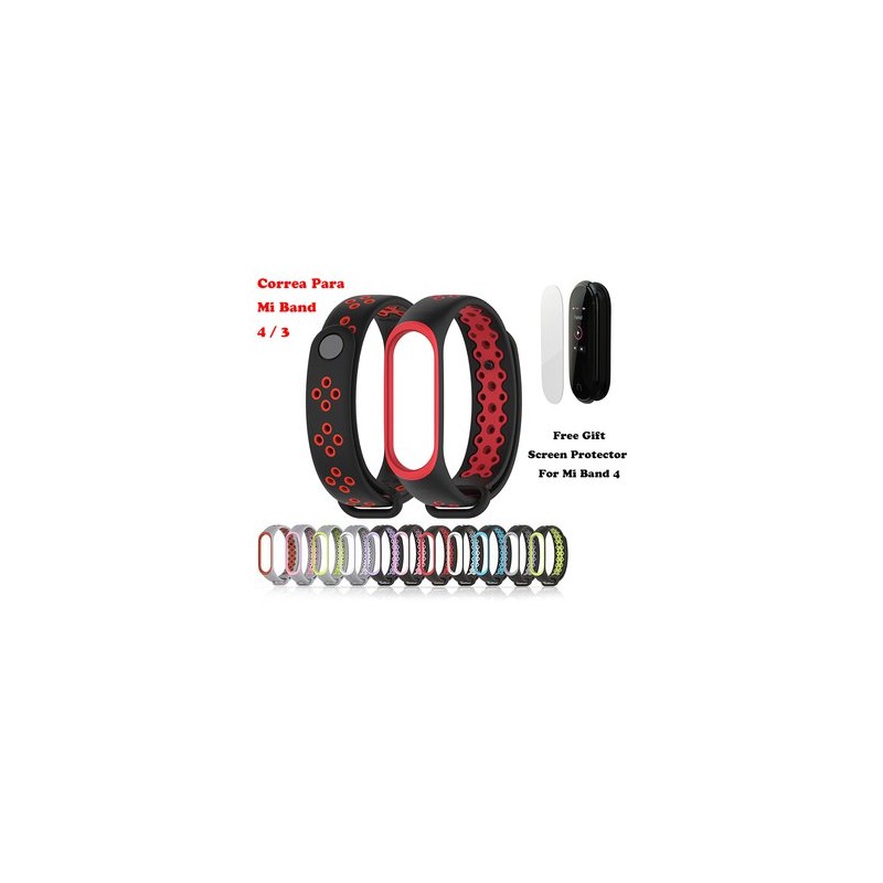 Característica1. muñequera/correa para la muñeca para Xiaomi MI band 4/32. Un buen reemplazo para colorear tu pulsera3. fácil y fácil de usar4. Hecho de alta calidad, ambiental y saludable5. cómodo de llevar6. material de la correa: silicona7. Tipo de hebilla: hebillas8. Correa Mijobs 100% original, ¡garantiza una alta calidad!Nombre: Pulsera de DeporteAplicación: Mi banda 3, Mi banda 4Material: elastómero termoplástico, aleación de aluminio.Características: Anillo anti-perdido incorporado (proceso de oclusión de dos colores)Impermeable durableNota: este producto no contiene el cuerpo de la pulsera, solo la pulseraNombre: Protector de pantallaAplicación: Mi banda 4Especificación: 39x14mmMaterial: TPU