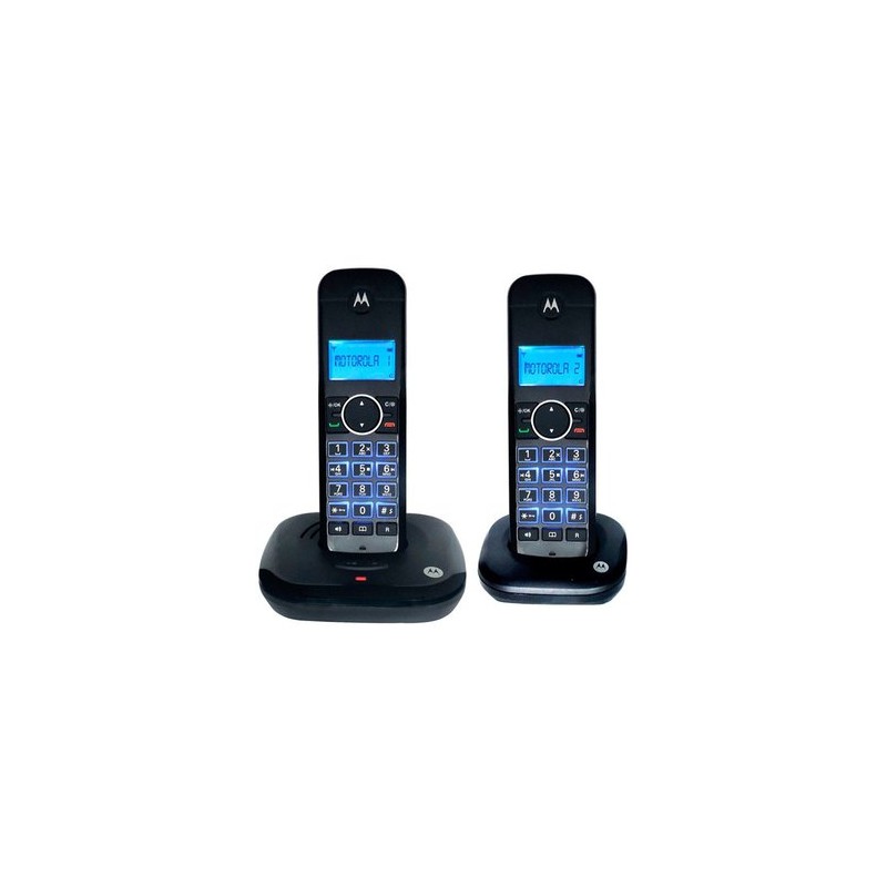 MOTO550CE-2Increíbles teléfonos inalámbricos Motorola con contestador con buzón de mensajes, con un altavoz Duplex en auricular que es expandible hasta 5 auriculares, con un directorio de 20 nombres/números y un listado de las últimas 5 llamadas y listado de las últimas 10 llamadas entrantes, y con 5 tonos polifónicos de timbre los cuales los tonos de timbre pueden ser asignados a diferentes contactos o números, y con una alarma despertadora con snooze, y un identificador de llamadas DTMF/FSK.